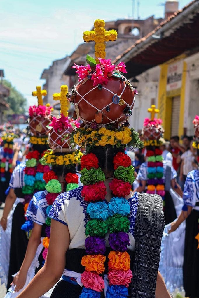 Por esta razón, mujeres ataviadas con indumentaria tradicional y portando cántaros adornados con flores, frutas y dulces sobre sus cabezas, recorren cada año las calles, desde el Parque Nacional hasta la iglesia de la Inmaculada, donde ingresan para participar en una misa.