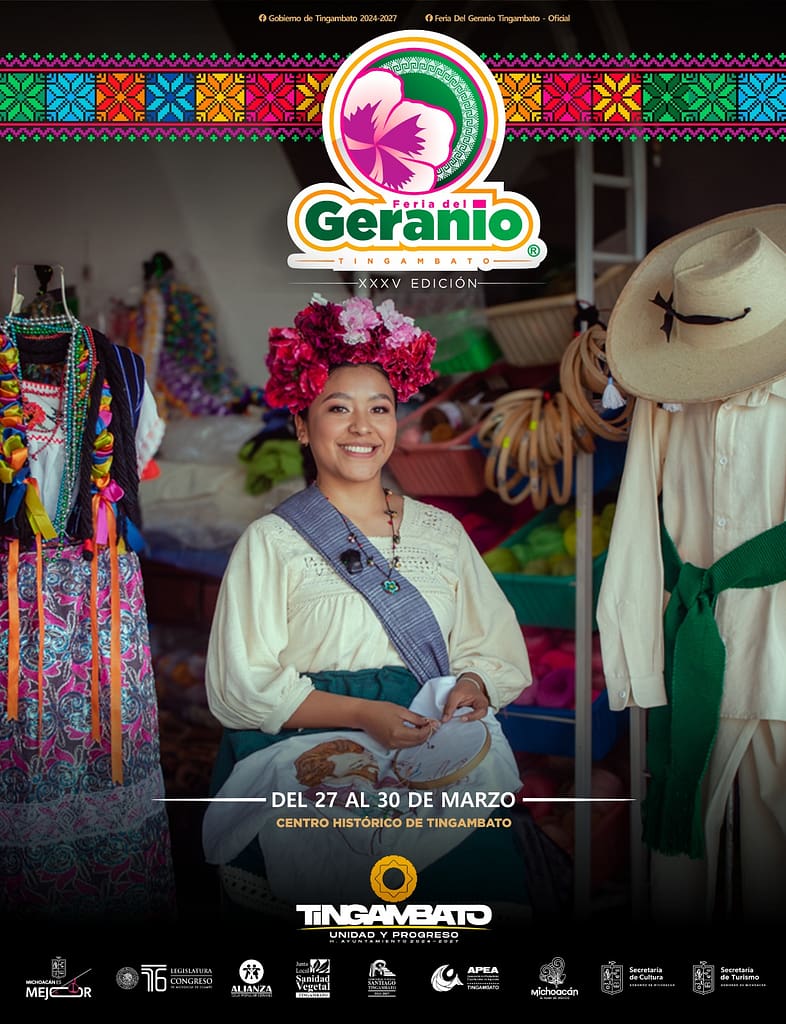 Morelia, Michoacán, 18 de marzo de 2026.- La Feria del Geranio Tingambato 2026 se llevará a cabo del 27 al 30 de marzo, consolidándose como uno de los eventos más coloridos del estado, donde se exhibirán alrededor de 5 mil ejemplares de geranios en más de 400 tonalidades distintas. Así lo informó la Secretaría de Turismo de Michoacán, dirigida por Roberto Monroy García.